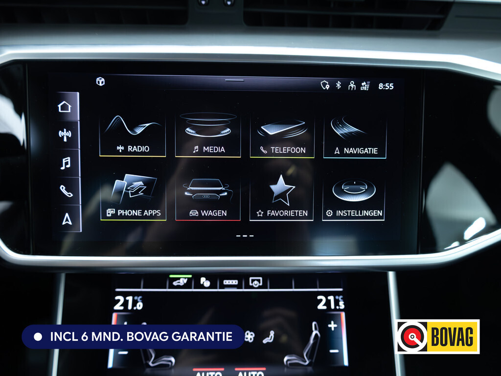 Duitse automerken staan bekend om hun innovatiekracht, topkwaliteit en uitstekende prestaties. Zo ook bij deze Audi A6 Limousine. Een en al Duitse klasse. Deze auto wíl gewoon gezien worden: kijk maar naar de sportieve S-Line styling. De krachtige benzinemotor van deze auto is gekoppeld aan een automatische transmissie. Koude start? Niet met de verwarmbare voorstoelen! Rijden met pit? Geen punt! De sportstoelen geven steun en stevigheid! Met een druk op de knop gaat de elektrische achterklep open. In deze auto profiteert u onder andere ook van: sportonderstel, warmtewerend glas, LED-dagrijverlichting, in delen neerklapbare achterbank en LED-achterlichten.Soepel inparkeren gaat gemakkelijker dan u verwacht dankzij de achteruitrijcamera. Adaptive cruise control is veilig en comfortabel. De snelheidsregelaar houdt automatisch afstand tot het voertuig dat voor u rijdt. De ingebouwde file assistent is een echte helper als het vaststaat onderweg. Het systeem meet ruimte tot de auto vóór u permanent en activeert zelfs de remmen als uw voorligger stopt. In één oogopslag weet u de complete systeemstatus van deze auto. Dankzij Connected Services. U bedient het full map navigatiesysteem en het audio-installatiesysteem met DAB-radio via knoppen op het stuur. Zo kunt u steeds uw aandacht gericht houden op de weg. En deze auto heeft ook kruisend verkeer detectie, electronic climate control, schakelpaddles aan het stuur, draadloos opladen, regensensor en keyless entry als standaard uitrusting.