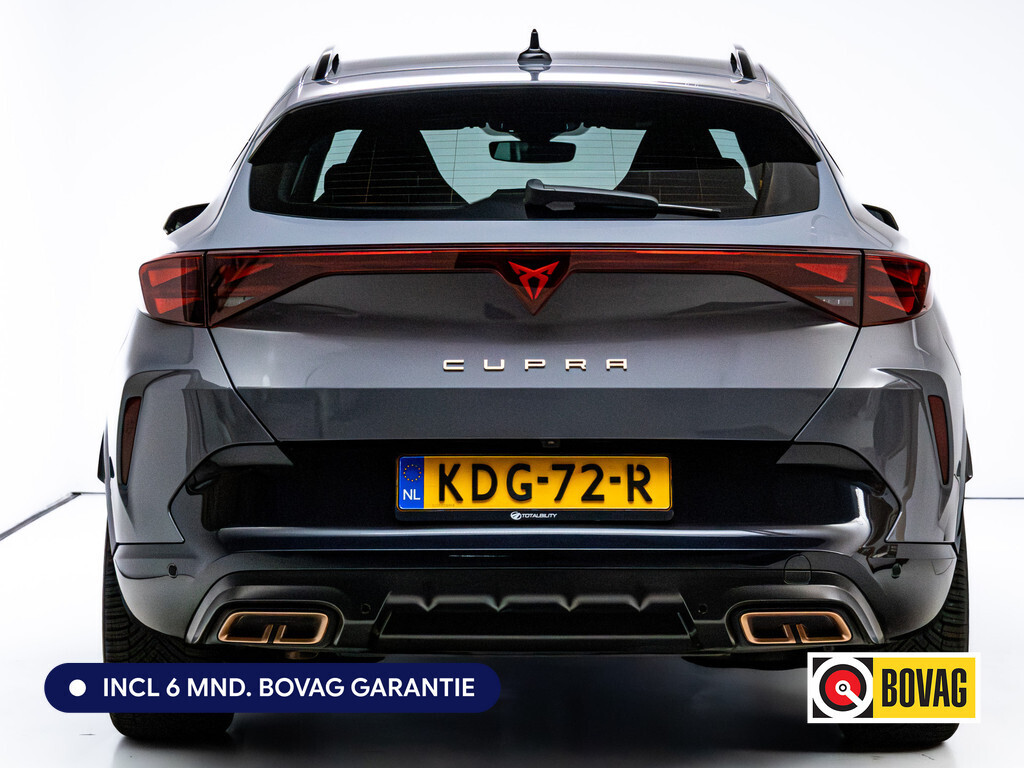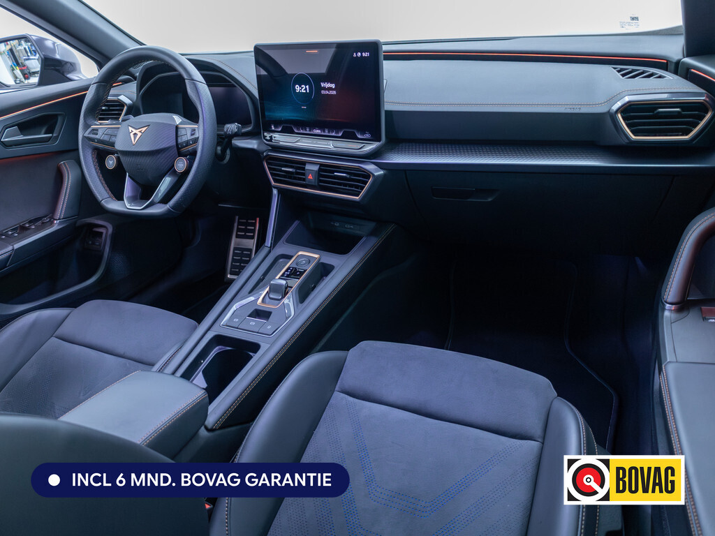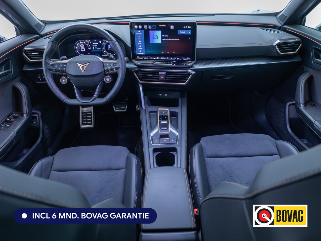 Ontspannen en zorgeloos autorijden, dat doet u met deze CUPRA Formentor. Deze auto uit het bouwjaar 2025 heeft 14846 kilometer gelopen. De benzinemotor geeft deze auto sportieve prestaties en zorgt voor een laag brandstofverbruik. Een weldaad voor u en uw bijrijder: deze CUPRA Formentor heeft verwarmbare voorstoelen. De sportstoelen houden u en uw passagier stevig vast tijdens een snelle rit, maar bieden ook altijd comfortabele ondersteuning. De elektrisch bedienbare achterklep opent met een druk op de knop. Bij de zeer complete uitrusting van deze auto behoren ook 18 inch lichtmetalen velgen, Full LED koplampen, donker getint glas achter, in delen neerklapbare achterbank, LED-achterlichten en verstelbare lendensteunen.Het digitale dashboard stelt u in staat uw cockpitinterface te personaliseren. Met de achteruitrijcamera ziet u wat er achter de auto gebeurt. Zo rijdt u moeiteloos achteruit. Adaptive cruise control houdt de ingestelde snelheid vast en houdt afstand tot het voertuig voor u. Praat tegen deze auto en de auto doet wat u wilt dankzij de ingebouwde spraakbediening. Ingericht op Connected Services, voor een nog veiligere en comfortabelere rit. En dan is deze auto ook nog eens voorzien van navigatiesysteem, automatische airconditioning, schakelpaddles aan het stuur, DAB ontvangst, regensensor en keyless entry.