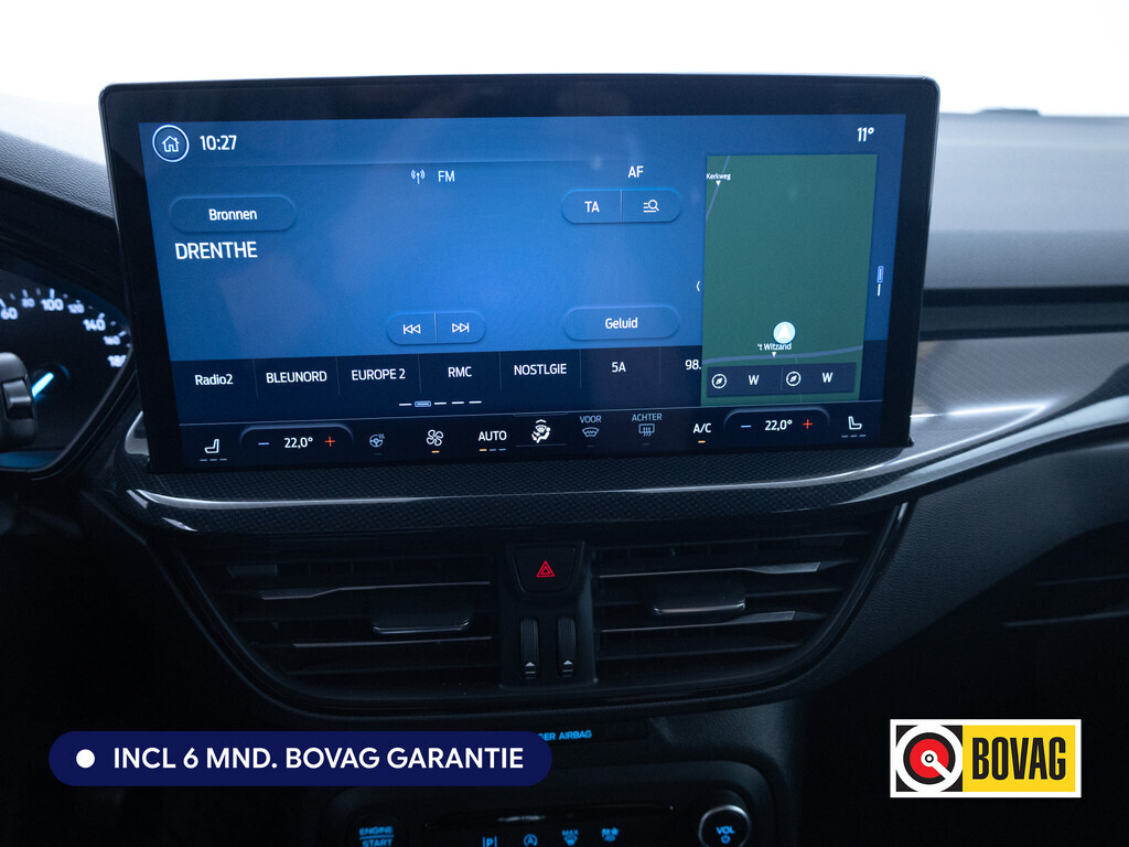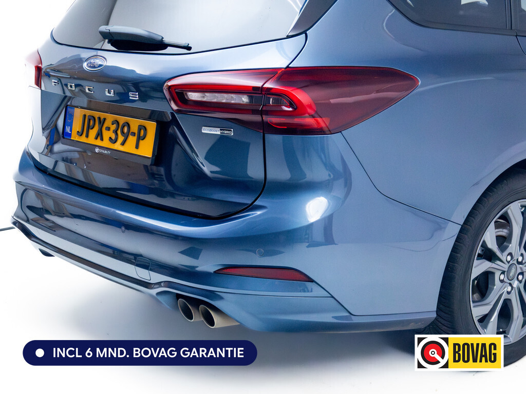 Het silhouet van deze auto maak direct zijn sportieve karakter duidelijk: krachtig, stijlvol en zelfbewust kijkt deze Ford Focus Wagon de wereld in. In deze auto vindt u een benzinemotor en een handgeschakelde zesversnellingsbak. De verwarmbare voorstoelen zijn een heerlijke extra optie, waarmee u uzelf en uw bijrijder een groot plezier doet. Chauffeur en bijrijder zitten stabiel in de scherpe bochten door de sportstoelen. Bij de rijke uitrusting horen ook 17 inch lichtmetalen velgen, Full LED koplampen, sportonderstel, geluidsisolerende ramen, LED-achterlichten en verstelbare lendensteunen.De meest gebruikte voertuigfuncties laten zich met behulp van uw stem bedienen. Uw smartphone is tegenwoordig de sleutel tot heel veel. Ook voor deze auto. Remote services, noemen we dat. Waar u ook bent, contact houden is een eitje. De aanwezige WIFI-hotspot zorgt voor 100% connectivity waar u ook bent. Dual zone automatische airconditioning verwarmt of koelt het interieur met een druk op de knop. Een plekje vinden in de binnenstad is één, inparkeren is twee. Voor dat laatste heeft deze Ford Focus Wagon prima parkeersensoren die u een handje helpen. De uitrusting van deze auto is met WIFI-hotspot, lederen sportstuur, regensensor, cruise control, automatisch dimmende binnenspiegel en lederen versnellingspook behoorlijk compleet.
