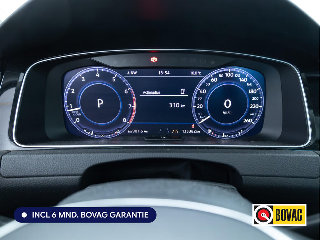 Alle ritinformatie en communicatie is gebundeld in één overzichtelijk digitale dashboard. Een handige optie is de achteruitrijcamera. Achteruitrijden, inparkeren en manoeuvreren gaat gemakkelijker dan ooit. Met adaptive cruise control houdt deze auto automatisch afstand tot uw voorligger. De kortste weg, de zuinigste weg, de snelste weg... elke weg is te vinden met het full map navigatiesysteem. De sensoren van de achteropkomend verkeer waarschuwing houden zicht op de dode hoeken achter u. Te weinig afstand tot de achterligger? Het systeem geeft direct een signaal. De uitrusting van deze Volkswagen is met automatische airconditioning, schakelpaddles aan het stuur, regensensor, automatisch dimmende binnenspiegel, centrale deurvergrendeling met afstandsbediening en lederen versnellingspook behoorlijk compleet.