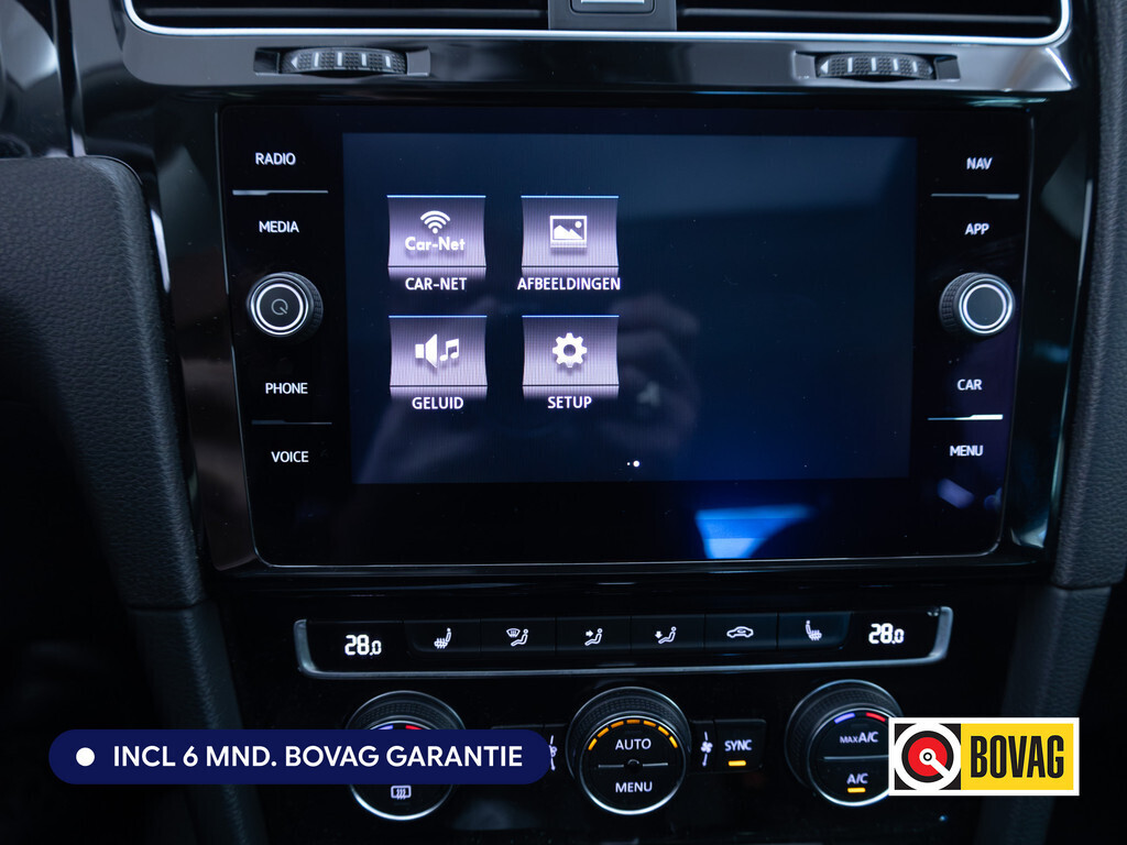 Het is het logo op deze auto dat u verzekert van de beste kwaliteit: Volkswagen. Want een Volkswagen is niet zomaar een auto, maar een topproduct van de Duitse auto-industrie. Kijk alleen maar naar deze Golf. Volkswagen-rijders weten het: een VW is gebouwd voor duurzaamheid en deze Golf ziet er dan ook uit als nieuw. Hij heeft een benzinemotor en een automatische transmissie. Ga samen met uw bijrijder lekker zitten in de verwarmbare voorstoelen en laat jullie bloedsomloop stimuleren door de massagefunctie. Voor het pittige uiterlijk én goed gesteund zitten zorgen de sportstoelen. Het interieur lijkt groter en ruimtelijker dankzij het elektrisch bedienbare glazen panoramadak. Ook 18 inch lichtmetalen velgen, LED koplampen, donker getint glas achter, in delen neerklapbare achterbank, LED-achterlichten en verstelbare lendensteunen horen tot de voorzieningen op deze auto.
