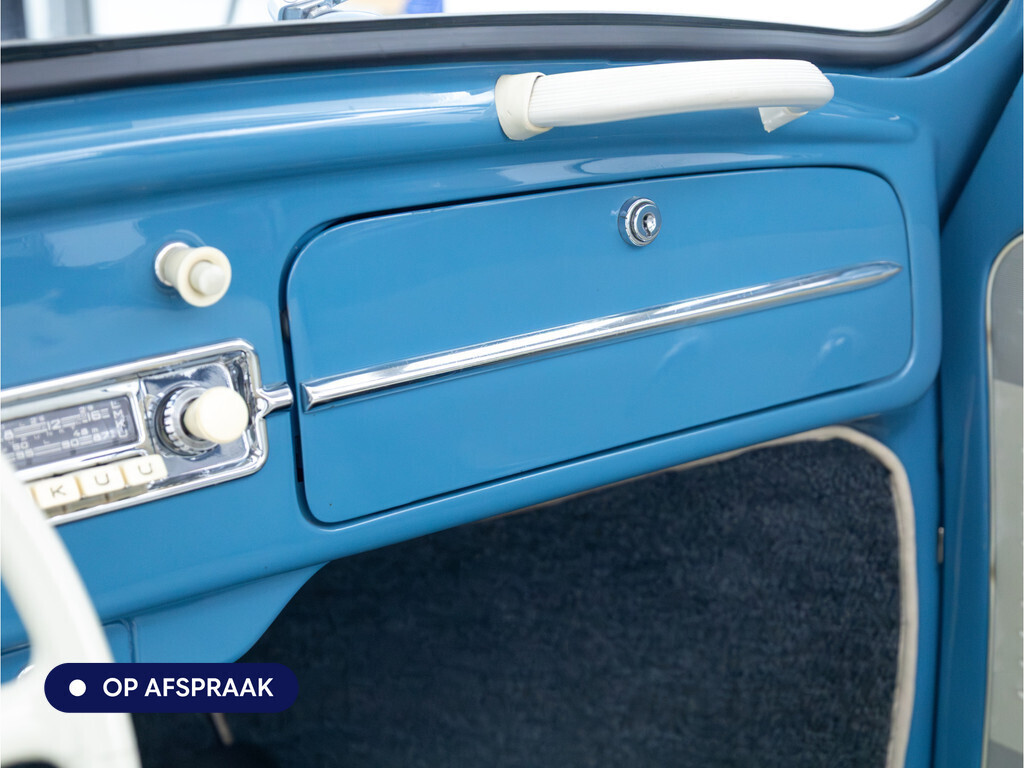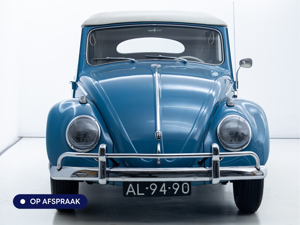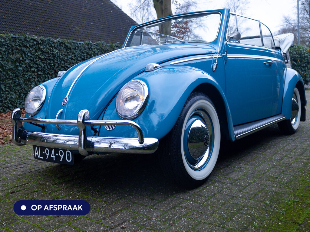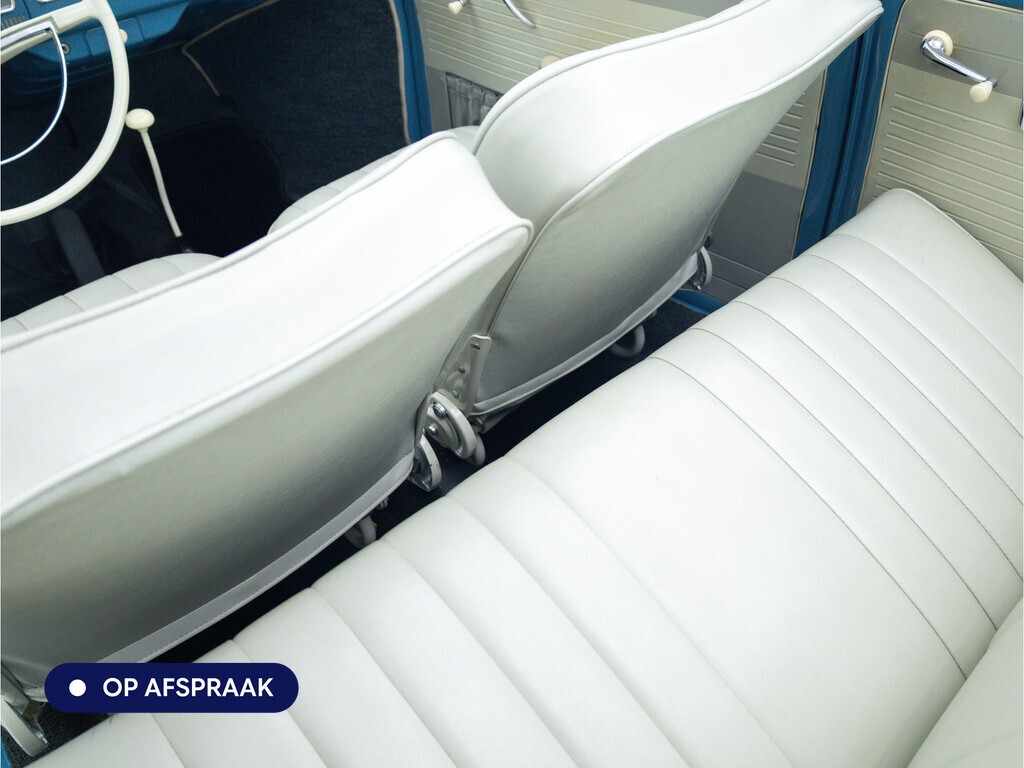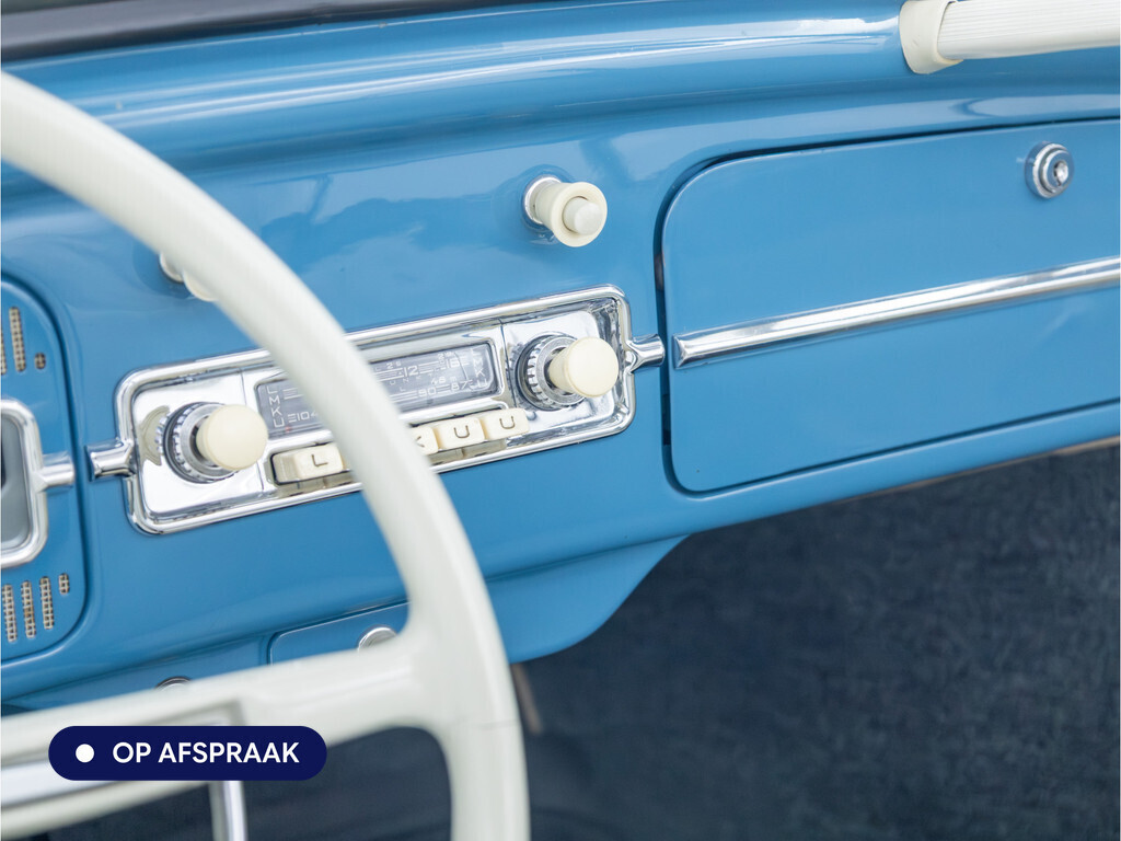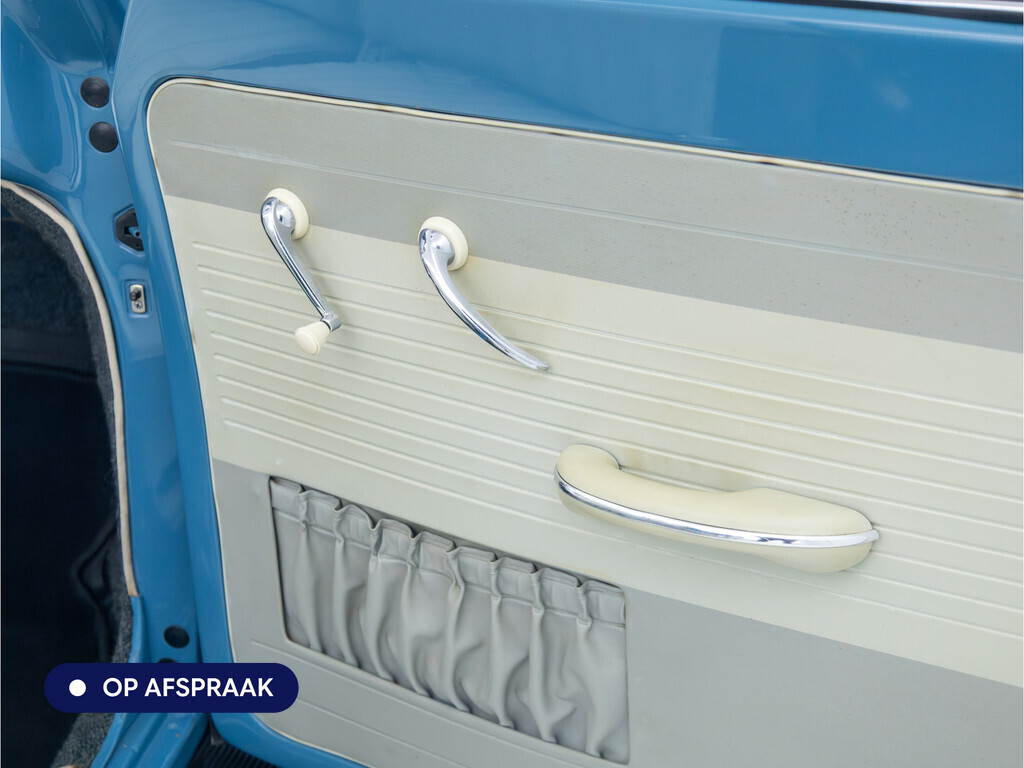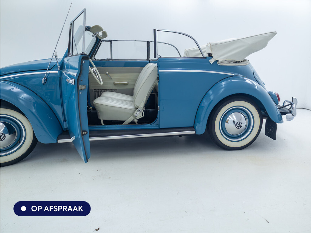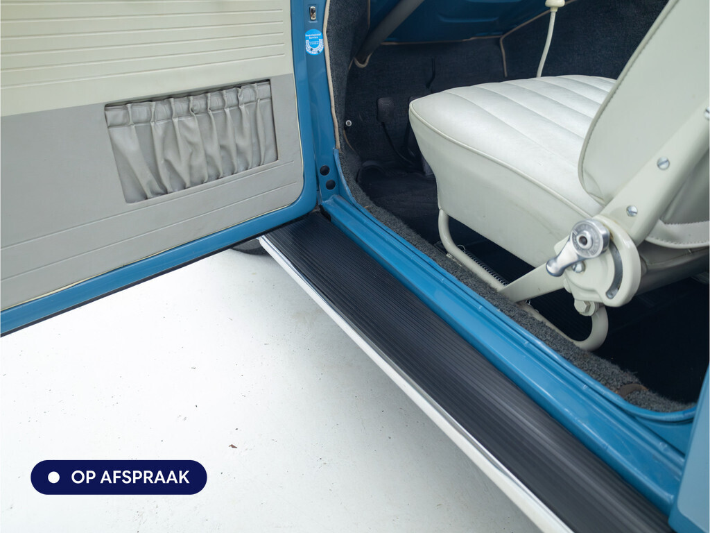 Te koop aangeboden: een schitterende Volkswagen Kever 1200 Cabriolet Karmann uit 1961, uitgevoerd in de originele kleur Gulf Blue. Deze klassieker verkeert in uitzonderlijke staat en is onlangs professioneel getaxeerd met een waardering van 2+ (zeer goede staat). Dat zegt alles over de afwerking, originaliteit en zorg waarmee deze auto is onderhouden.