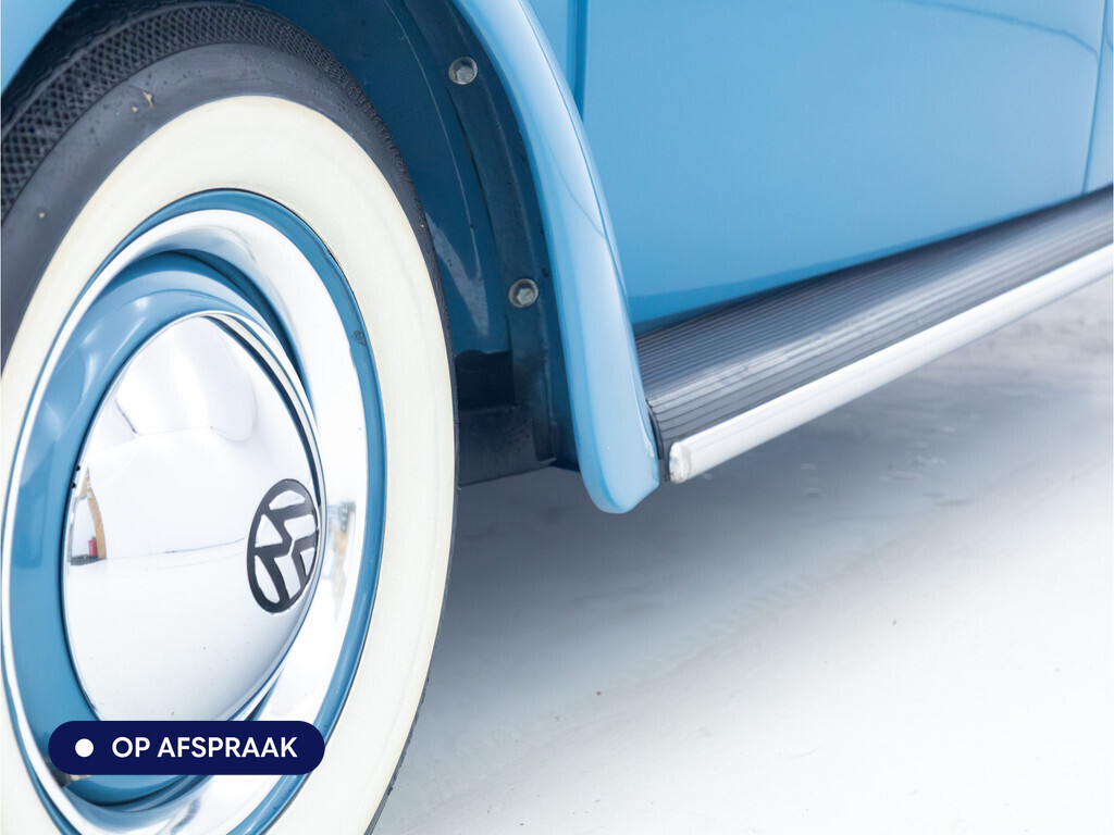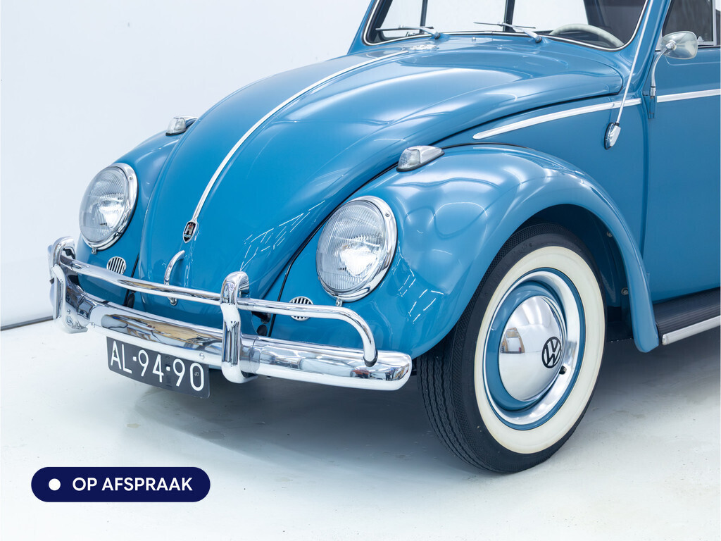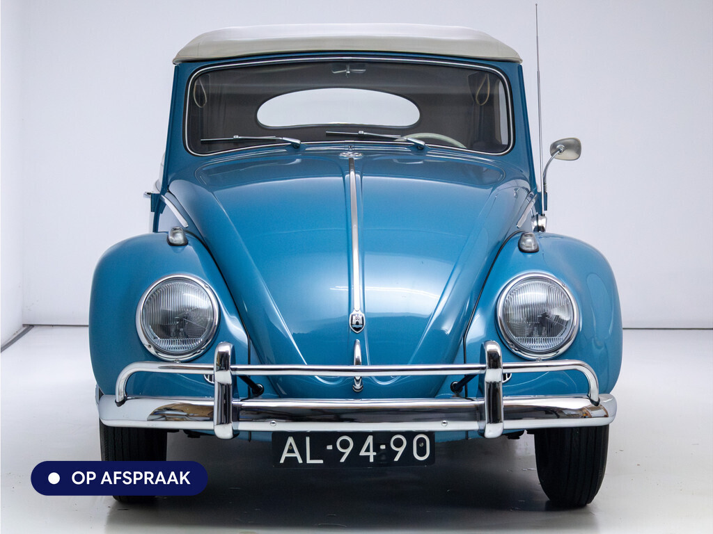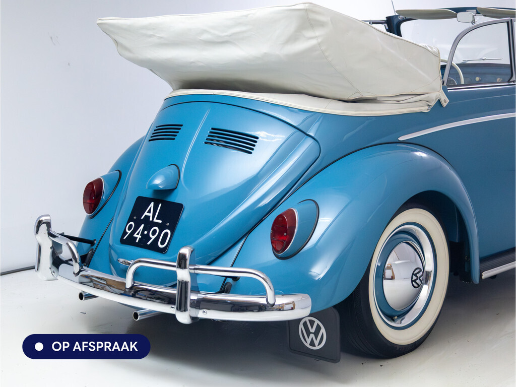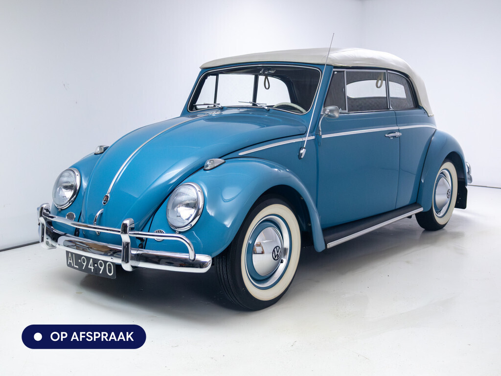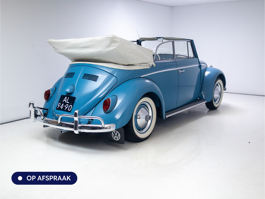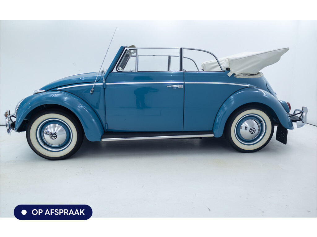 Te koop aangeboden: een schitterende Volkswagen Kever 1200 Cabriolet Karmann uit 1961, uitgevoerd in de originele kleur Gulf Blue. Deze klassieker verkeert in uitzonderlijke staat en is onlangs professioneel getaxeerd met een waardering van 2+ (zeer goede staat). Dat zegt alles over de afwerking, originaliteit en zorg waarmee deze auto is onderhouden.