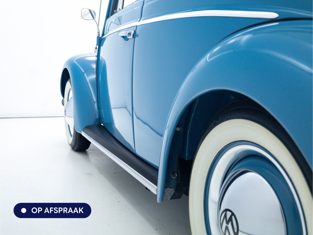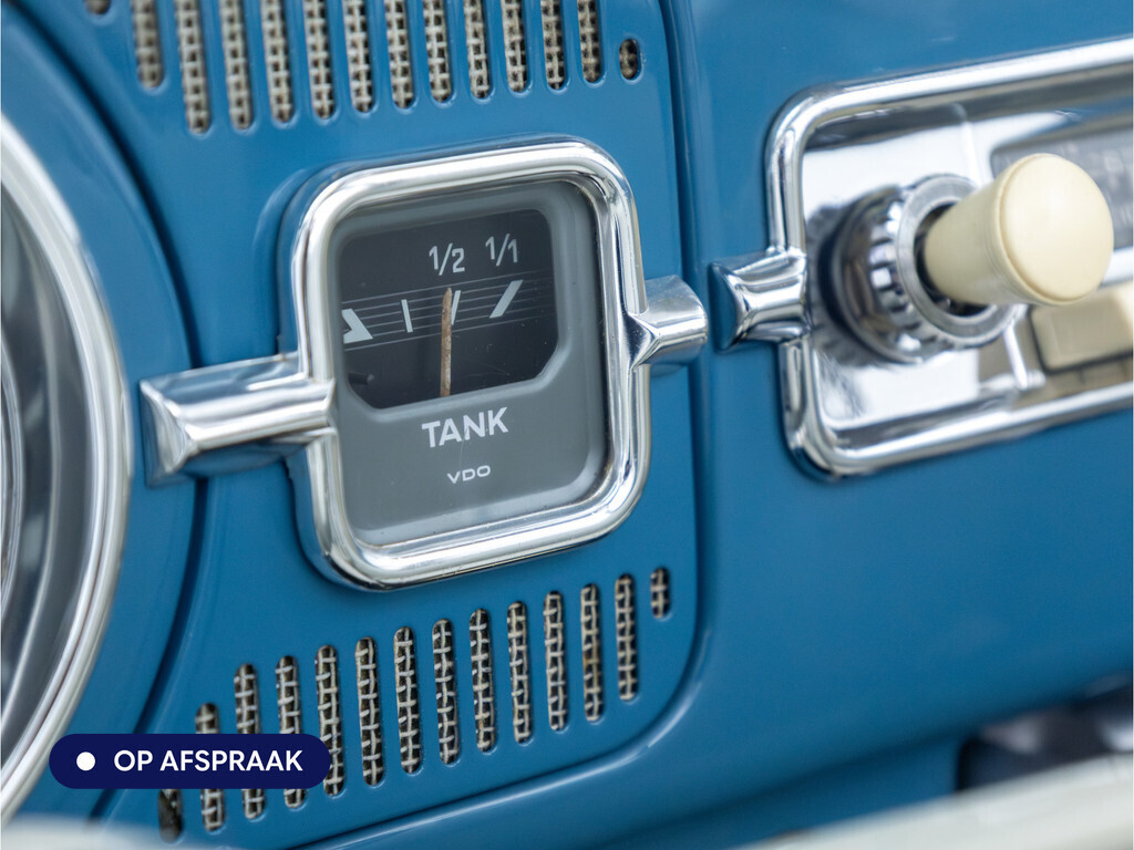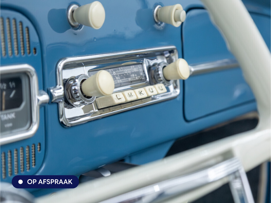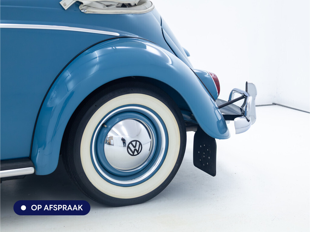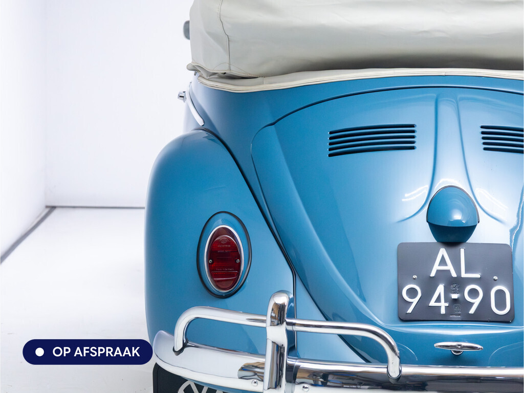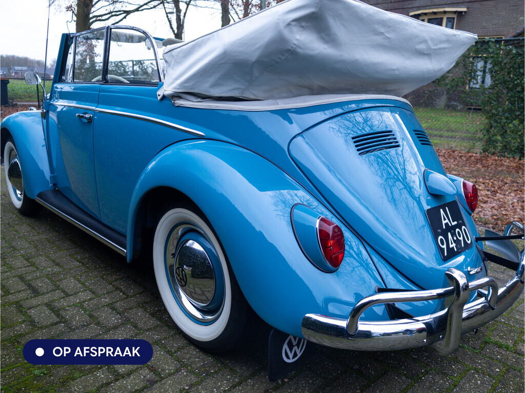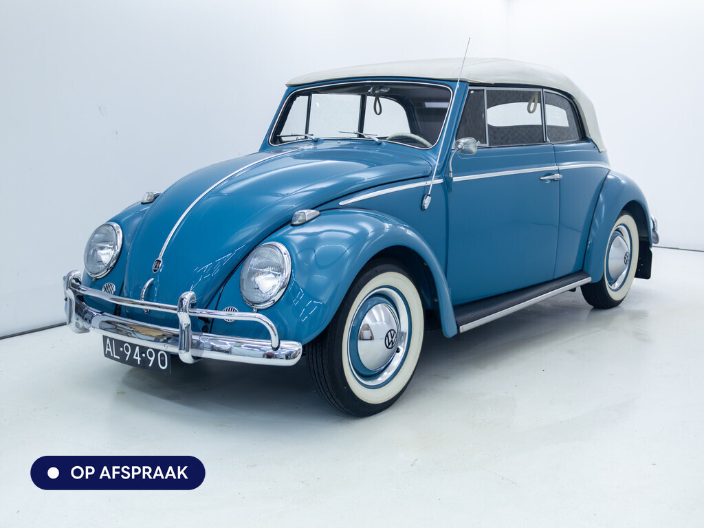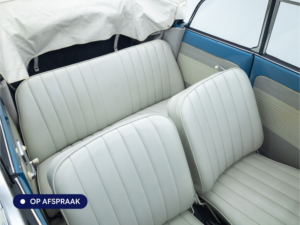 Te koop aangeboden: een schitterende Volkswagen Kever 1200 Cabriolet Karmann uit 1961, uitgevoerd in de originele kleur Gulf Blue. Deze klassieker verkeert in uitzonderlijke staat en is onlangs professioneel getaxeerd met een waardering van 2+ (zeer goede staat). Dat zegt alles over de afwerking, originaliteit en zorg waarmee deze auto is onderhouden.