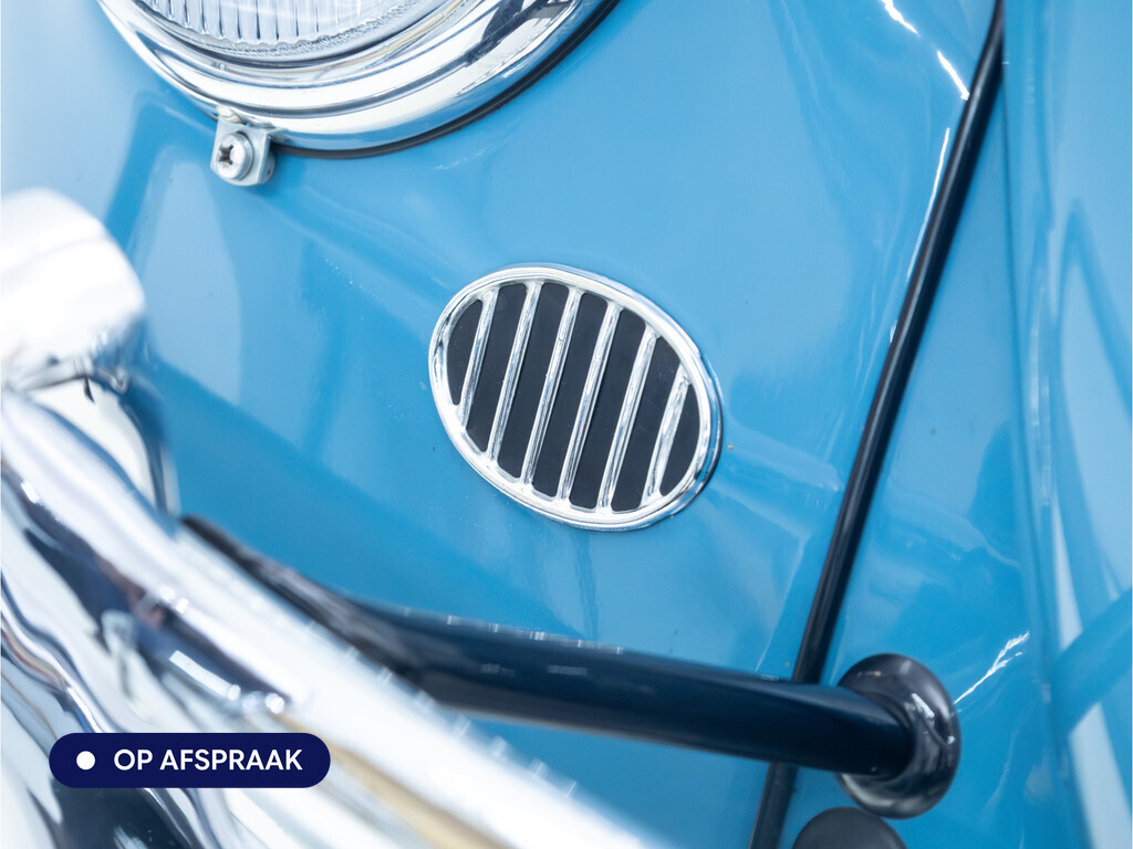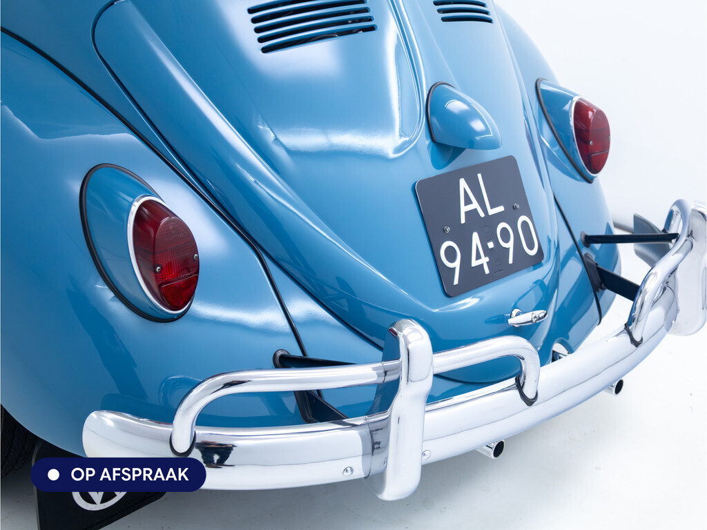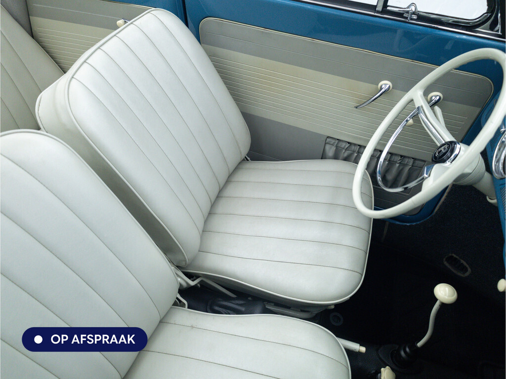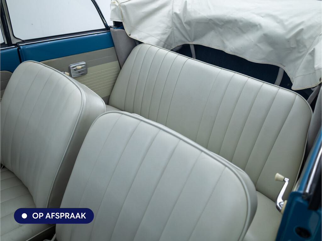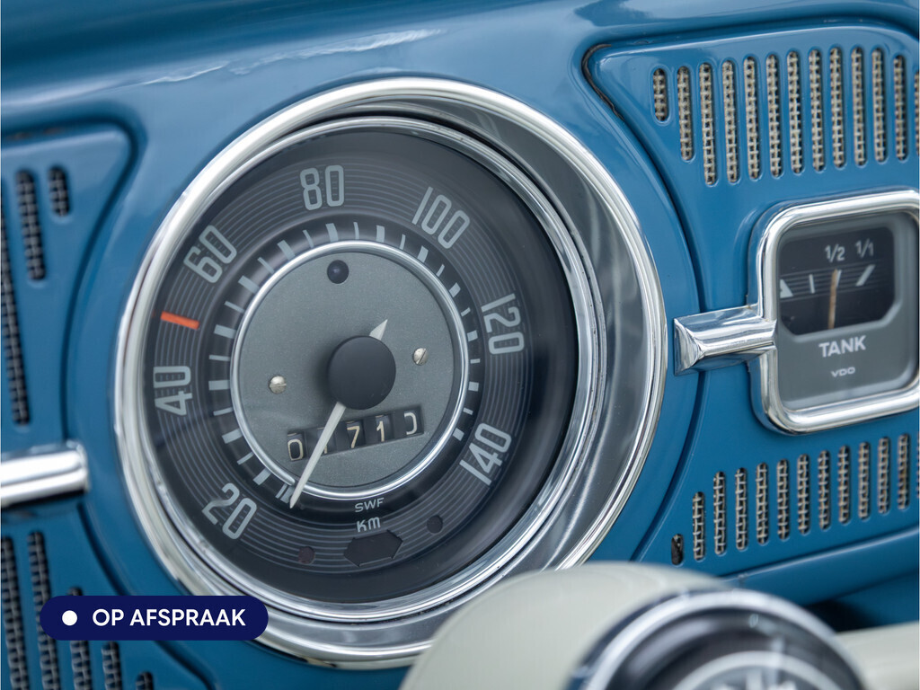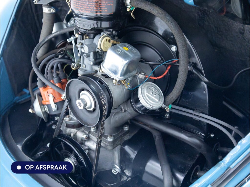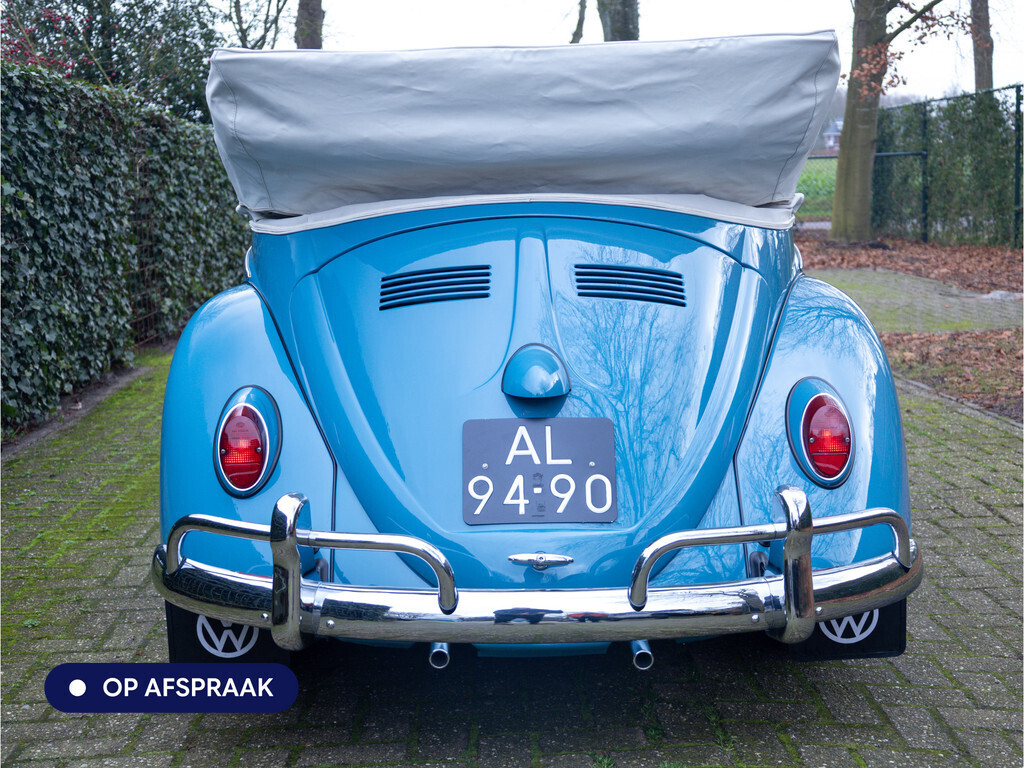 Te koop aangeboden: een schitterende Volkswagen Kever 1200 Cabriolet Karmann uit 1961, uitgevoerd in de originele kleur Gulf Blue. Deze klassieker verkeert in uitzonderlijke staat en is onlangs professioneel getaxeerd met een waardering van 2+ (zeer goede staat). Dat zegt alles over de afwerking, originaliteit en zorg waarmee deze auto is onderhouden.